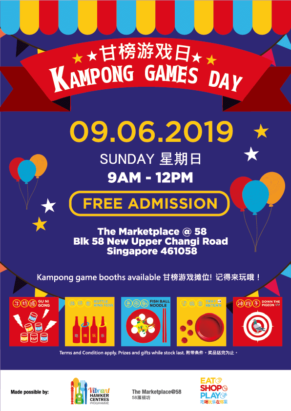 Come join us for some fun at The Marketplace @ 58. There will be hawker centres vouchers and attractive prizes waiting for you to be won. Don’t miss out on all the fun! See you there!